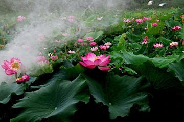“小荷才露尖尖角,早有蜻蜓立上頭”,每到夏季便是荷花盛開的時節(jié),素有“凌波仙子”美譽的荷花相繼綻放。近日,四川廣漢荷花開,白霧繚繞似仙境,碧綠的荷葉在微風(fēng)中層層起伏,一朵朵粉白的荷花掩映其中,時而嬌羞頷首,時而亭亭玉立,千姿百態(tài)、楚楚動人,猶如一幅夏日荷塘水墨畫,真可謂“接天蓮葉無窮碧,映日荷花別樣紅”。