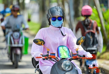 近日,??谑忻裨诟邷叵?ldquo;全副武裝”出行。海南省氣象臺(tái)繼續(xù)發(fā)布高溫四級(jí)預(yù)警,五指山以北大部分地區(qū)出現(xiàn)37度以上的高溫天氣,海口被熱浪侵襲似火爐,路上行人使出各種防曬神器。
