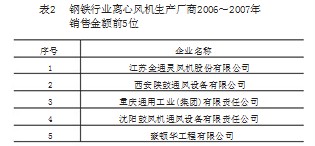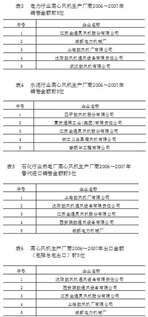離心風(fēng)機(jī)產(chǎn)品主要應(yīng)用于鋼鐵、電力、水泥、石化等工業(yè)領(lǐng)域,其中在鋼鐵、電力、水泥等行業(yè)已大部分實(shí)現(xiàn)國(guó)產(chǎn)化,石化行業(yè)熱電廠離心風(fēng)機(jī)大部分依靠進(jìn)口,目前已逐步實(shí)現(xiàn)進(jìn)口替代。根據(jù)風(fēng)機(jī)協(xié)會(huì)統(tǒng)計(jì),各主要行業(yè)排序見(jiàn)表2~表6。