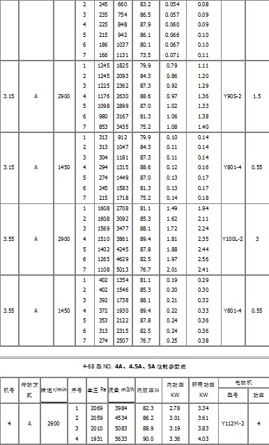 1、本風機制成單吸入,機號有:№2.8、3.15、3.55、4、4.5、5、6.3、8、10、12.5、16、20等十二個機號。