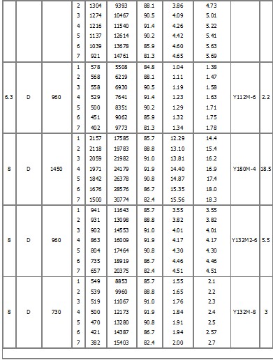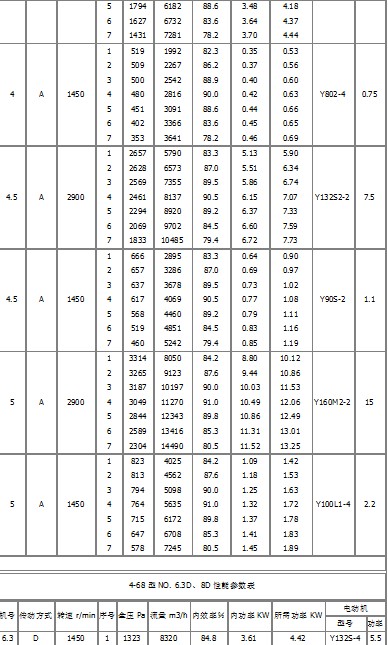 4、風機的傳動方式:有A、B、C、D四種,№2.8-5采用A式,以電動機直聯傳動,風機的葉輪、機殼直接固定在電動機軸和法蘭盤上(電動機用D2/T2型);N06.3-12.5采用懸臂支承裝置,又分為C式(皮帶傳動皮帶輪在軸承外側)和D式(用聯軸器聯接傳動)兩種傳動方式;№l6、20為B式懸臂支承裝置,皮帶傳動,皮帶輪在軸承中間。