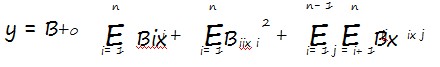 響應(yīng)面方法模型建立容易、使用方便, 而且能夠顯式地揭示設(shè)計(jì)變量和目標(biāo)之間的響應(yīng)關(guān)系, 因此在葉輪機(jī)械的優(yōu)化設(shè)計(jì)中得到了廣泛應(yīng)用。響應(yīng)面近似函數(shù)通常使用二階多項(xiàng)式( 但不限于多項(xiàng)式) , 可以寫成如下形式.jpg)