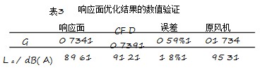 對(duì)于根據(jù)樣本點(diǎn)擬合出來(lái)的響應(yīng)面多項(xiàng)式, 常使 用 統(tǒng) 計(jì) 學(xué) 中 的 決 定 系 數(shù) R ( coef ficient ofm ult iple det er minat ion)2a和修正決定系數(shù)R ( R square adjust ed) 來(lái)評(píng)價(jià)響應(yīng)面的近似質(zhì)量。-這兩個(gè)系數(shù)越接近于 1, 表示響應(yīng)面的近似程度越高, 足夠的逼近通常要求 R 2 和 R 2 的值在 0 9 以上。a1421樣本點(diǎn)設(shè)計(jì)和數(shù)值結(jié)果分析選取風(fēng)機(jī)的效率 G和 A 聲級(jí) L a 為設(shè)計(jì)目標(biāo), 應(yīng)用響應(yīng)面分析方法優(yōu)選 € €l 和 H 的范圍, 首先將 € €l 和H編碼至(- 1, 1) 產(chǎn)生設(shè)計(jì)空間, 見(jiàn)表 1。.jpg)