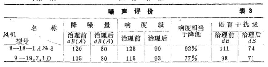 治理前 , 進(jìn)風(fēng) 機(jī)房 , 房 內(nèi)根本 無法談 話, 出機(jī)房伴有暫時(shí)耳聾。 治理 后, 室 內(nèi)互相交 談可 清 晰聽 到, 無其他不 良感覺。 風(fēng)機(jī)房外 , 噪聲也 從95d B (A )降 到71d B (A )以下, 房外 已 感覺不 出 有風(fēng)機(jī) 在運(yùn)轉(zhuǎn)。